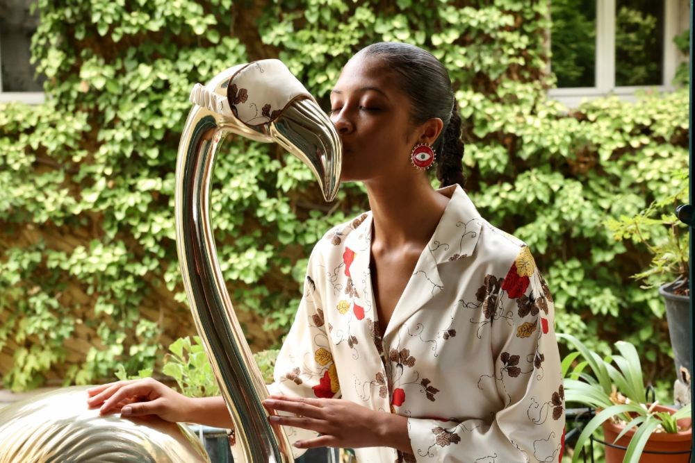 Alexandra’s out-of-the-box approach in this setting brings a whimsical, poetic feel to each image, offering a playful narrative that invites us to dream. Her artistic vision blends beautifully with the house’s rich history and grandeur, making the shoot a tribute not only to the collection but to the legacy of the building itself.