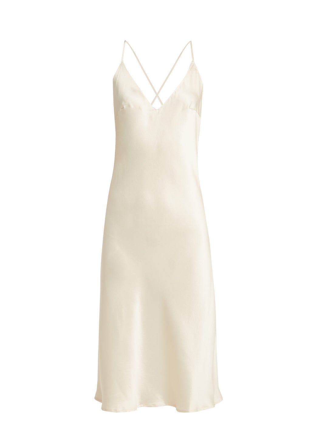 Our medium-length Nico nightdress, cut from super soft and luxurious silk, can be paired with our long-length Jade robe for an evening of elegant lounging, or dress it up with heels and a jacket for a refined evening summer wear look. The beautiful V-neck décolleté and low crossover back provide a sense of delicacy and create a bespoke and relaxed yet elegant silhouette.