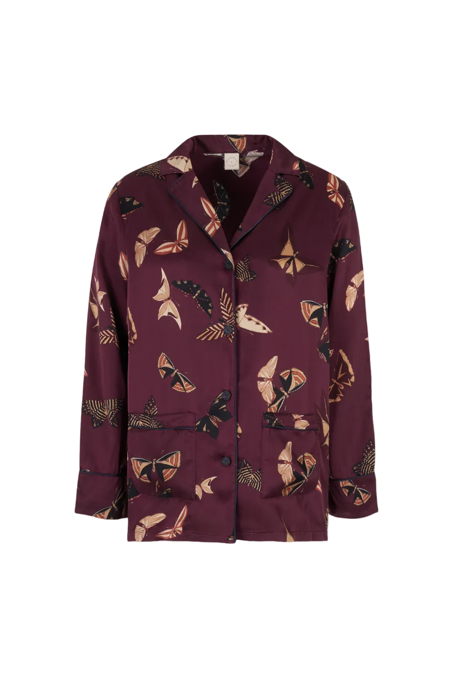 Crafted from 100% 19 momme silk, the set features navy contrast piping, branded mother-of-pearl buttons, and an elasticated waistband for trousers. The silk set are also designed with pockets on both the sides for the ultimate comfort and ease.