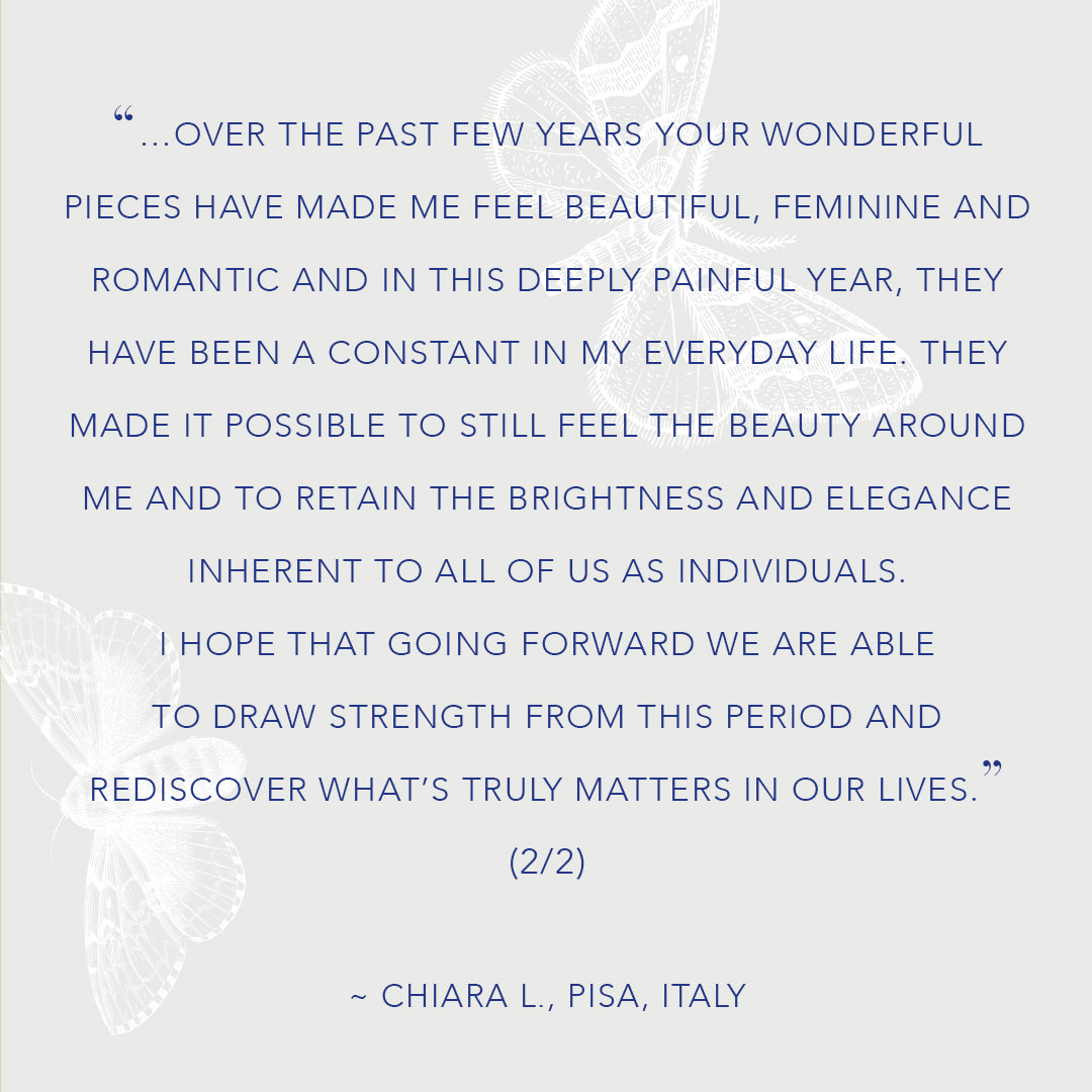We believe in the power of kind words as a creative force. Like a butterfly flapping its tiny wings, thoughtful and encouraging words with their small positive vibrations can reverberate endlessly and their impact can be felt around the globe, creating a "butterfly effect".